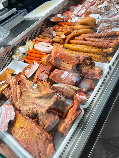 A wide selection of Eastern European meats, cheeses, and Georgian dumplings at Tienda Tangra.